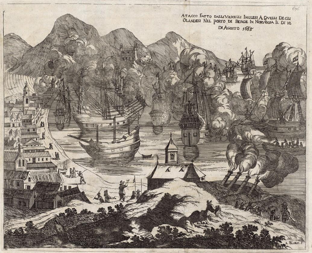 Den 2. august 1665 stod det et stort slag på Bergen våg mellom den engelske flåte og hollandske handelsskip. Disse to stormaktene var fra før av i krig med hverandre. En flåte på 66 hollandske fartøyer fullastet med varer fra Ostindia ble forfulgt av engelske krigsskip som ville ta de store verdiene, og søkte derfor tilflukt i Bergen havn.