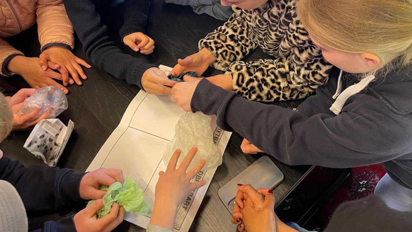 Siste oppgåve var å finne ut kva for pose som forureinar miljøet minst: Er det fryseposen, hundeposen, bio-posen eller plastposen? For å resonnere seg fram til eit svar, fekk elevane kjenne på dei ulike plastposane.