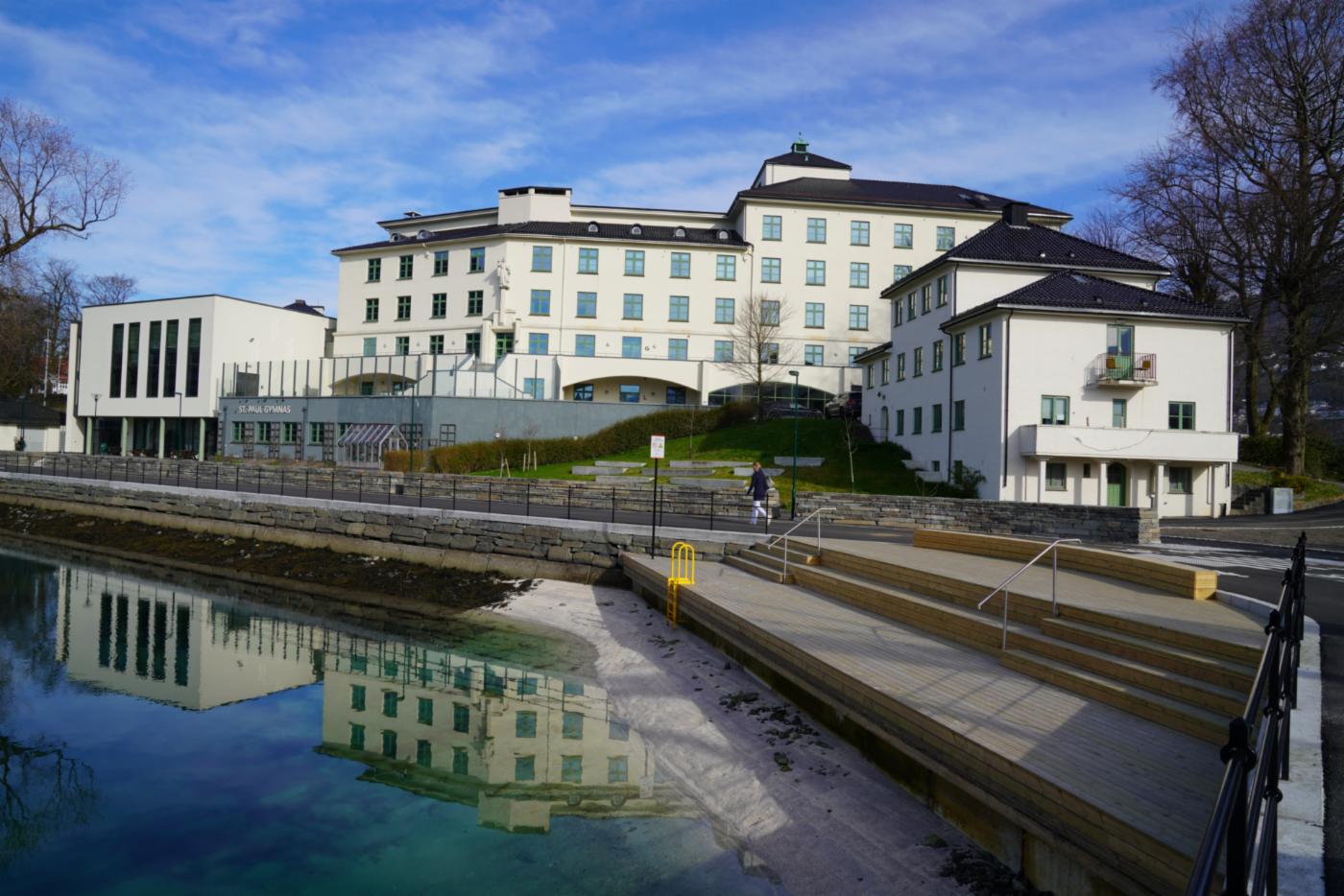 Foran St. Paul gymnas har det kommet et amfi ned til vannet.