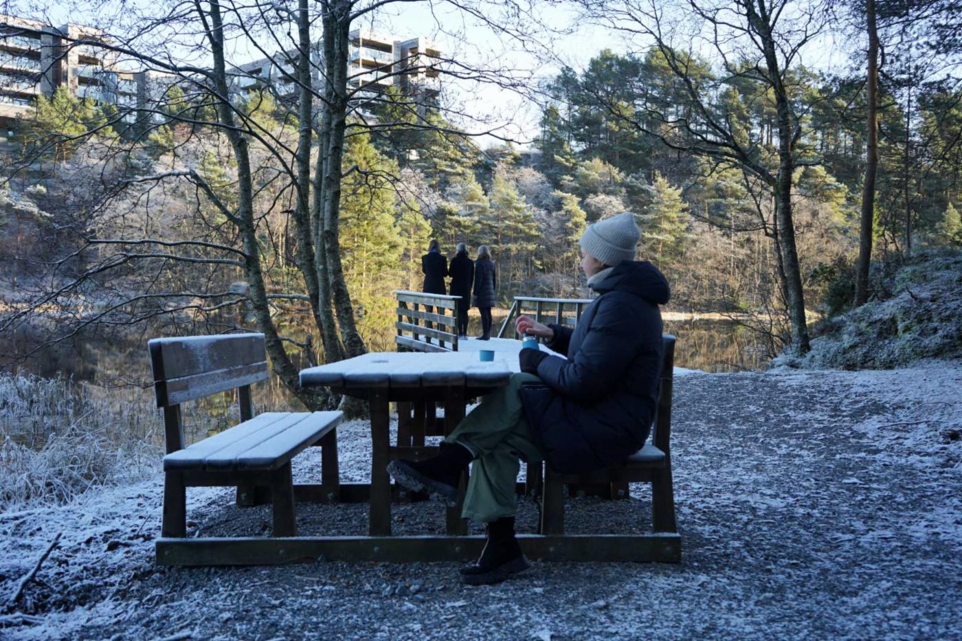 Gapahuken er plassert nært inntil turveien, som også er forbedret. Det er også et benkebord ved vannet som er ypperlig for sette seg ned og spise matpakken når det er opplett. Se hvor gapahuken ligger i kart her.