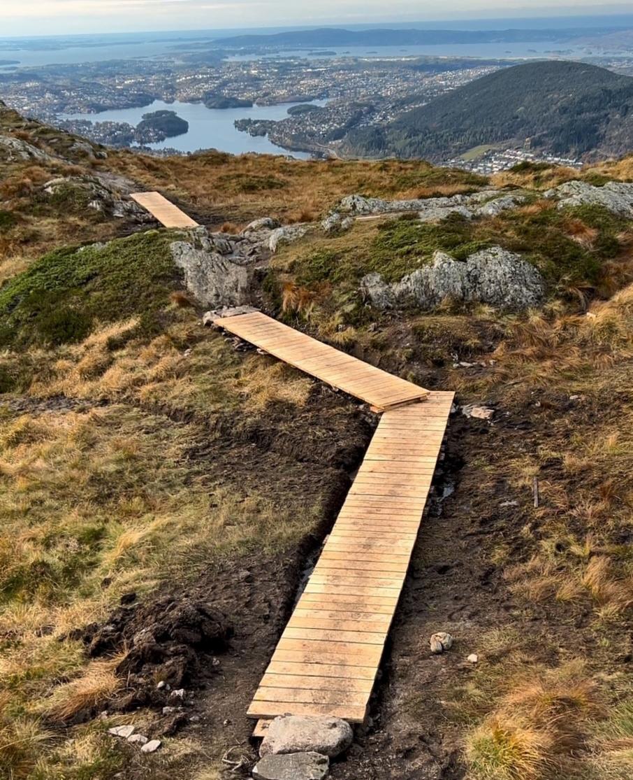 Det blir fort mange mennesker på Ulriken, og mange ønsker å gå en liten tur i området. De finner gjerne veier opp og ned fra toppen som er ujevne og bratte, og som i tillegg sliter på terrenget.