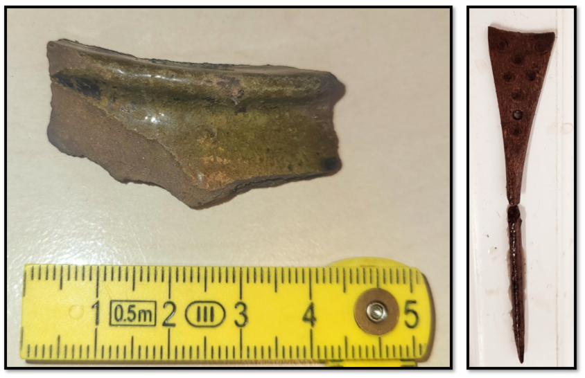 I massene har de blant annet funnet det som ser ut til å være et stort, bearbeidet hvalbein på vel en halv meter, som kan ha vært et emne til et redskap. De har også funnet flere vevlodd og en flott hårnål med sirkeldekor, mengder av bearbeidet gevir som tyder på kam-makeri, samt spor etter diverse håndverk som for eksempel rester etter sko. De ferskeste funnene, bokstavelig talt rett fra bakken, er blant annet ulike glaserte keramikkskår, baksteheller og bit av et bryne.