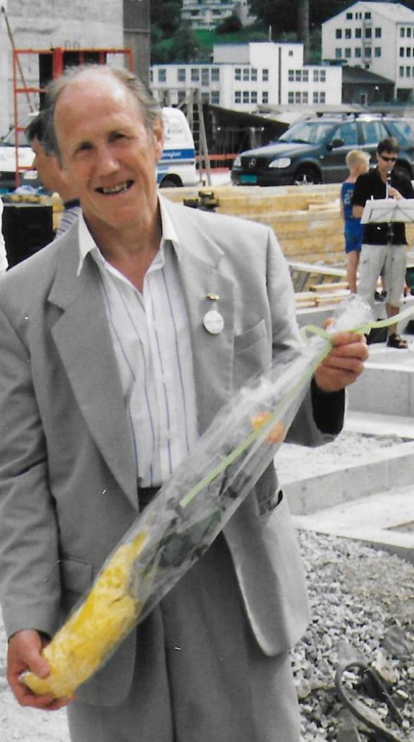 Knut.S Bjerke under nedleggelsen av grunnsteinen til Vitalitetsenteret i 2002.