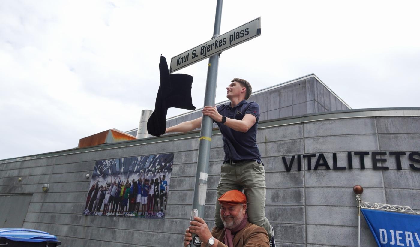 Pådriver og ildsjel Knut Schjelderup Bjerke, kjent som Vitalitetsenterets far, har fått plassen utenfor Vitalitetsenteret kalt opp etter seg.