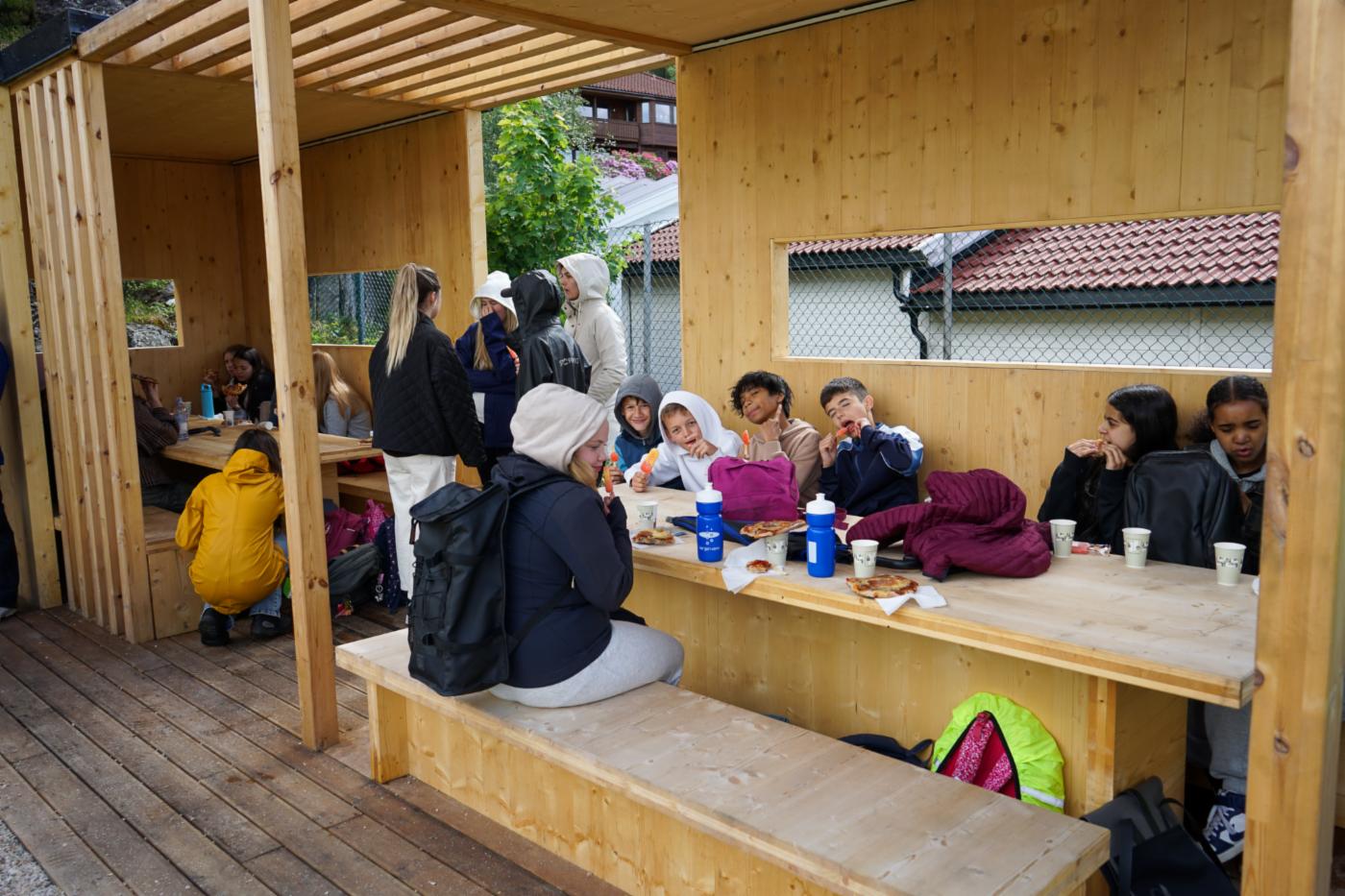 I starten av dette prosjektet deltok barn fra Laksevåg og Damsgård barnehage på et idèverksted hvor de kunne komme med ønsker for plassen. De ønsket en rasteplass med tak for å sikre en tørr sitteplass til matpakken, og nærmiljøet ønsket et sted for ballspill.