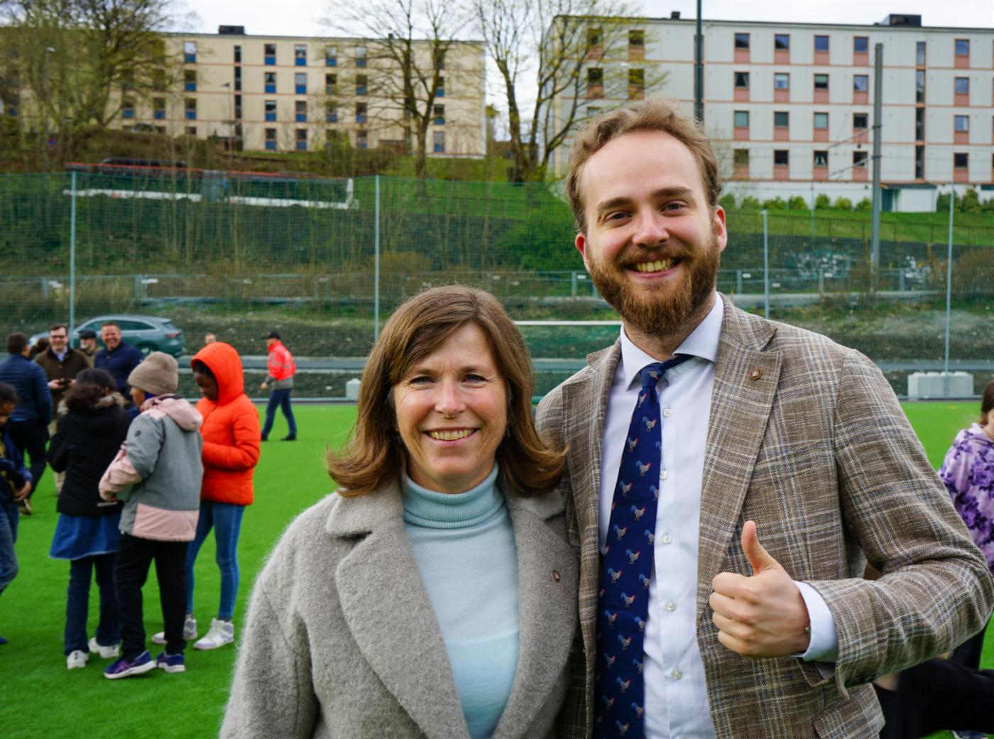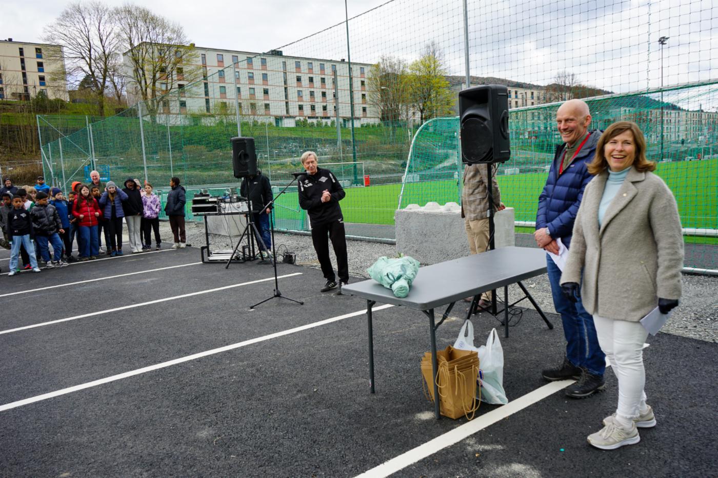 Byråd for byutvikling, Christine Kahrs, gratulerte Slettebakken med en ny, topp moderne kunstgressbane helt uten innfyll. Hun takket nærmiljøet for tålmodigheten og forståelsen de har vist gjennom årene og takket alle som har bidratt med å få banen på plass.
