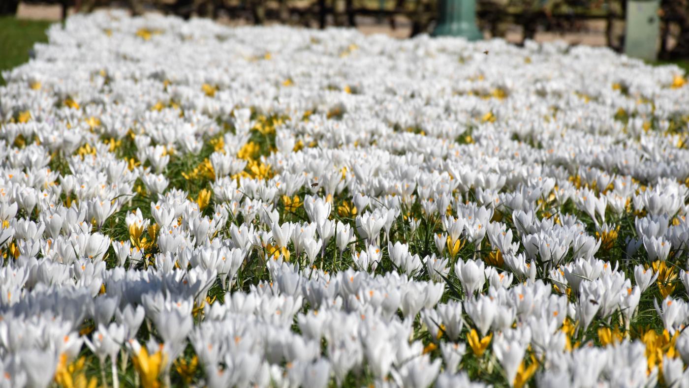 De har så vidt satt i gang med litt planting av vårblomster nå i uke 14, men hovedplanting er uke 15–17.