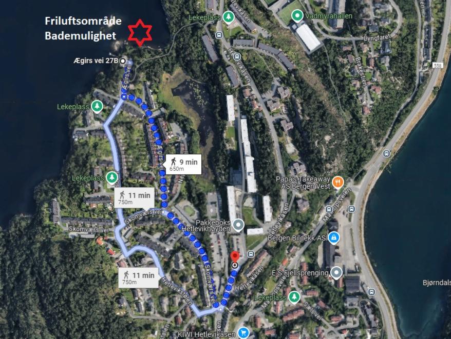 Vi anbefaler å bruke offentlig transport, da det kun er HC-parkeringsplasser i området. Nærmeste adresse er Ægirs vei. Ta buss nummer 3 fra Bergen sentrum til Vestkanten. Bytt der til buss nummer 41 og gå av på Storaholtet busstopp. Derfra tar det cirka 5 minutter å gå til friluftsområdet ved Storavatnet. Følg turveien gjennom skogen vestover. Veien er noe ulendt og derfor lite egnet for barnevogner og rullestoler. En mer tilgjengelig vei er fra busstoppet Hetlevikåsen, med en gangtid på cirka 9 minutter.