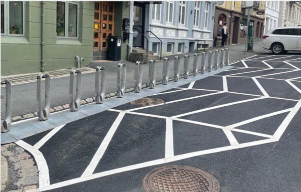 De nye containerne vil plasseres på Øvre Korskirkeallmenningen, der det står et bysykkelstativ i dag. Bymiljøetaten jobber med å finne en alternativ plassering for bysyklene.