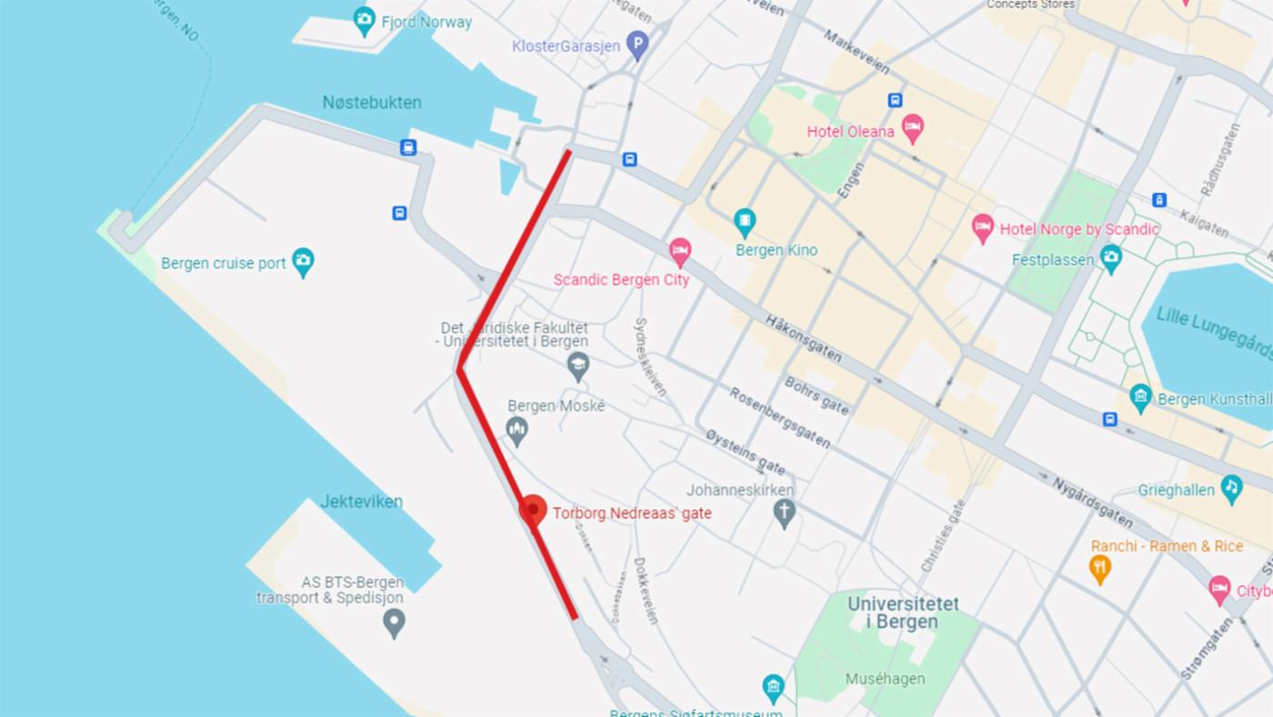 Nøstegaten og Torborg Nedreaas gate blir stengt for biler mellom Komediebakken og Bredalsmarken fra klokken 15.00 og frem til rundt 24.00. Politiet vil være utplassert flere steder for å sikre flyt og være behjelpelige for dem som har nødvendige ærend ved Nøstet.