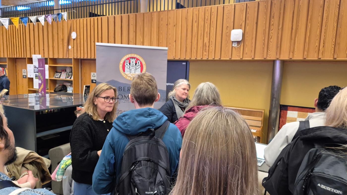 Bergen kommune sin HR-avdeling var også på messen. De rekrutterte aktivt til stillinger som vikar i barnehage, og var representert med ansatte som arbeider med arbeids- og språkpraksis i kommunen. De opplevde større pågang på sin stand enn tidligere.