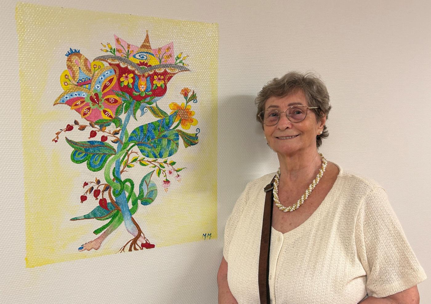 Prosjektet har også styrket samarbeidet med aktivitetssenteret i samme bygg. Maria Elisabeth Molnar som deltar der og som har malt siden hun var barn, har bidratt med to flotte malerier.