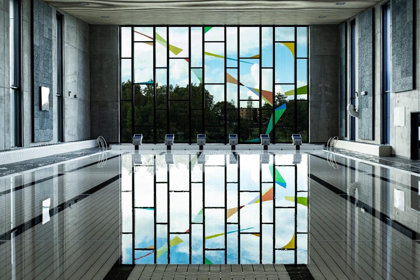 Ortun svømmehall har fått både et monumentalt glassmaleri og veggmalerier i en lang korridor av kunstneren Marie Buskov. Kunstverket skal bidra til å skape identitet til stedet og gi kunstopplevelser for de besøkende.
