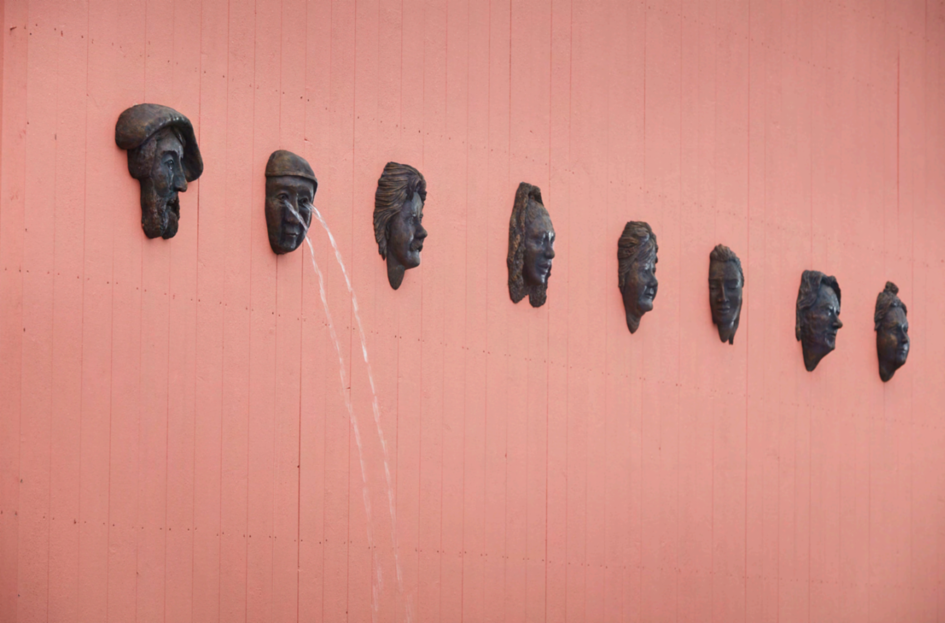 Så langt kan kunstverket på skoleplassen på Kronstad virke teoretisk og litt lite imøtekommende. Egentlig blir vi ført fra streng teori og direkte over i humoren. Fra vannsamlerne går det nemlig rør til ansiktene på veggen. Så når begeret i veggen er fullt, skal det komme vann sprutende ut gjennom munn, nese eller ører på de ulike figurene. Det er bare å være til stede på rett plass til rett tid.