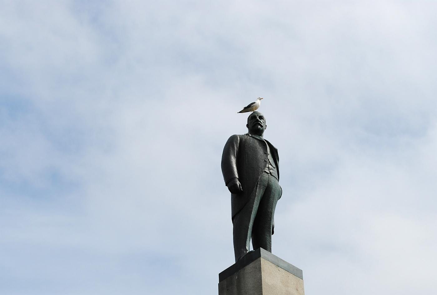 Skulpturen er av Christian Michelsen (1857-1925), og har hatt sin faste plass i Byparken siden 1938. Det var Gustav Vigeland (1869-1943) som fikk i oppgave å portrettere Michelsen.