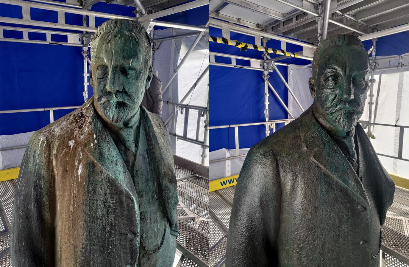 I juni 2025 forsvant statuen av Christian Michelsen bak et solid stillas i noen uker. Nå har både han og den høye sokkelen fått en nødvendig vask, rens og god konservering.
