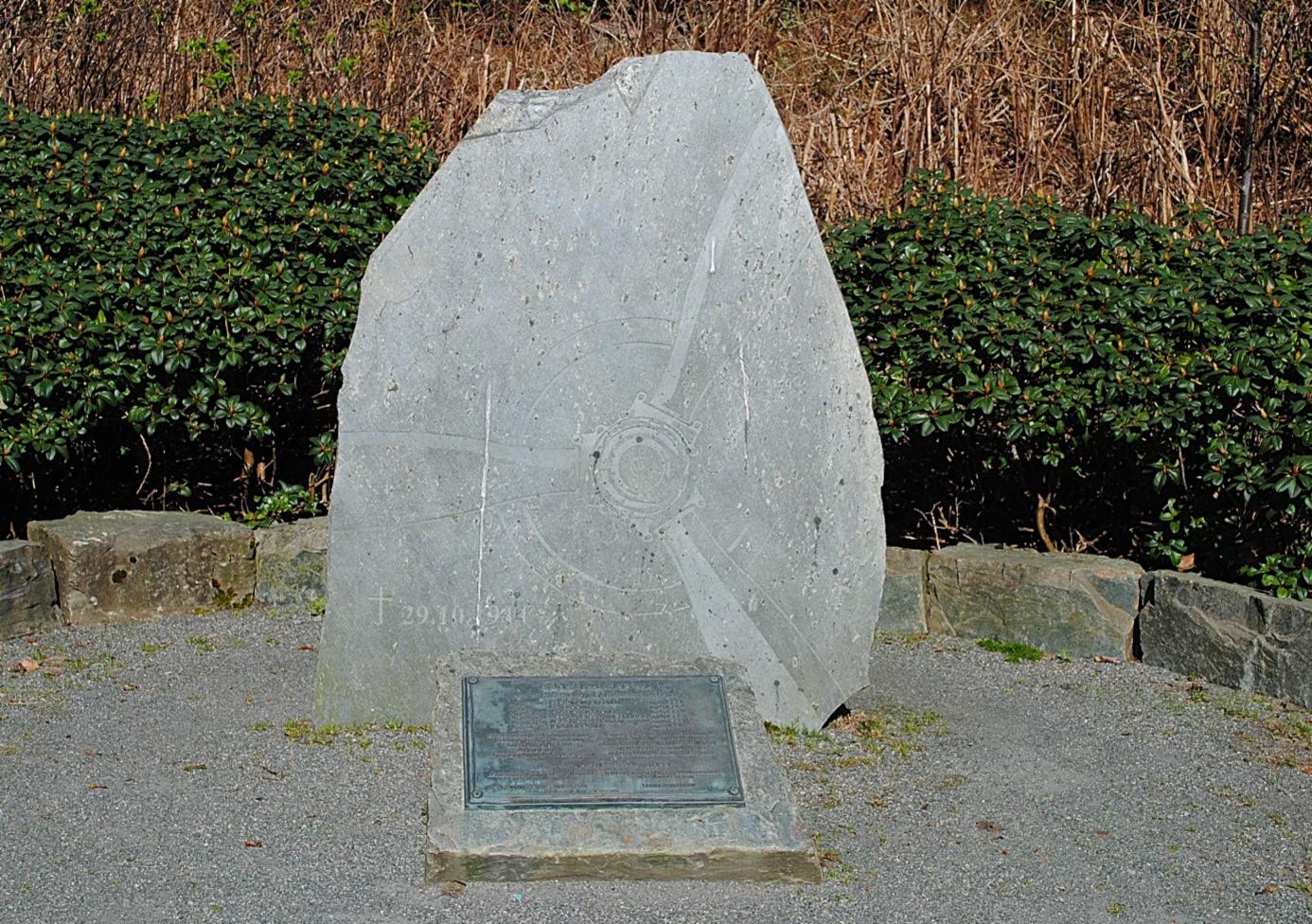 Som en del av Skulpturløypen rundt Store Lungegårdsvann har et krigsminnesmerke funnet sin plass. Ved gangveien er det plassert en stor stein. På den glatte vossaskiferen kan vi ane at en propell er risset inn, sammen med et kors og en dato. Foran monumentet er det montert en plate med flere opplysninger på.
