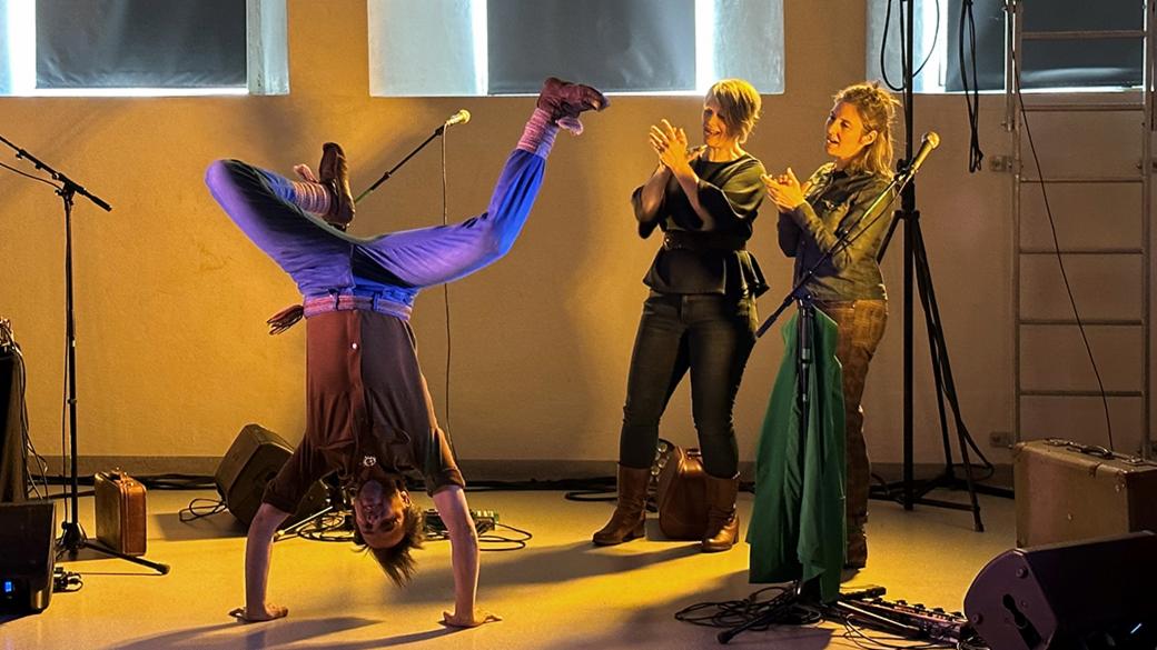 Ved hjelp av kun sangstemmen og effektbokser blir musikkrommet på Christie krybbe skoler en formiddag i april plutselig omgjort til nordisk natur med tilhørende joik, høyfjell med lokking på kyr, en båttur med bølgeskvulp med måkeskrik og en gospelkirke i Nord-Amerika, med mer. Elevene synger med og klapper takten til alt fra hiphop til folkemusikk fra Balkan, og får blant annet prøve seg på capoeira.
