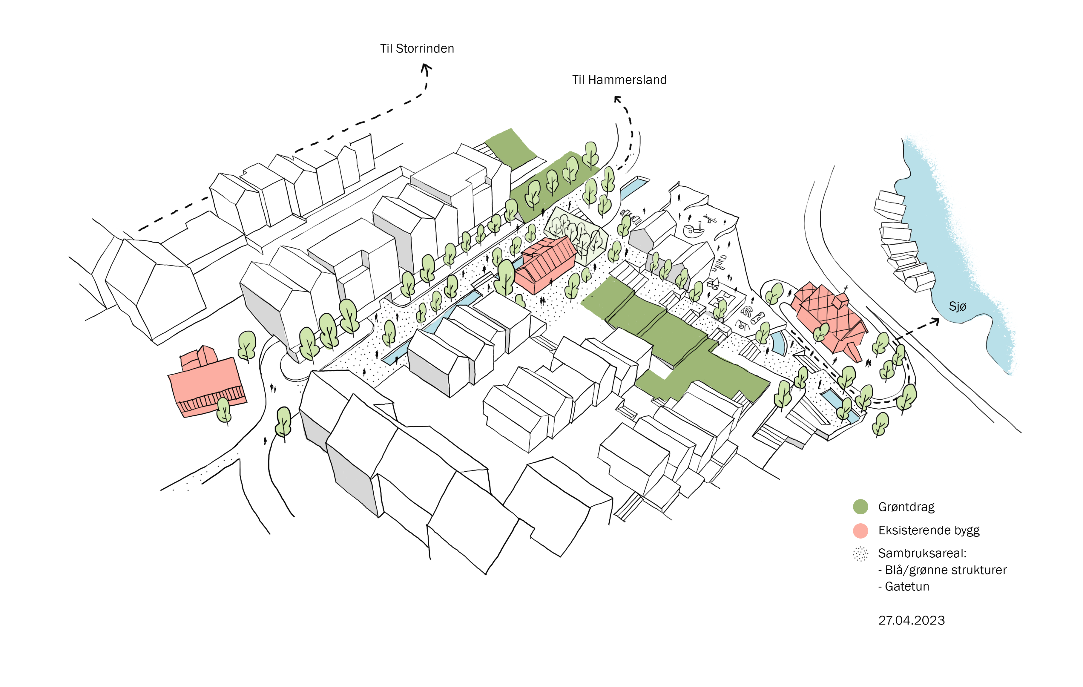 Hovedformålet er boligbebyggelse. Det planlegges for inntil 210 boliger, herunder noen kommunale utleieboliger. Det foreslås i hovedsak blokker og rekkehus med tilhørende parkeringsanlegg under bakken, uteoppholdsarealer, lekeplasser og tverrforbindelser.