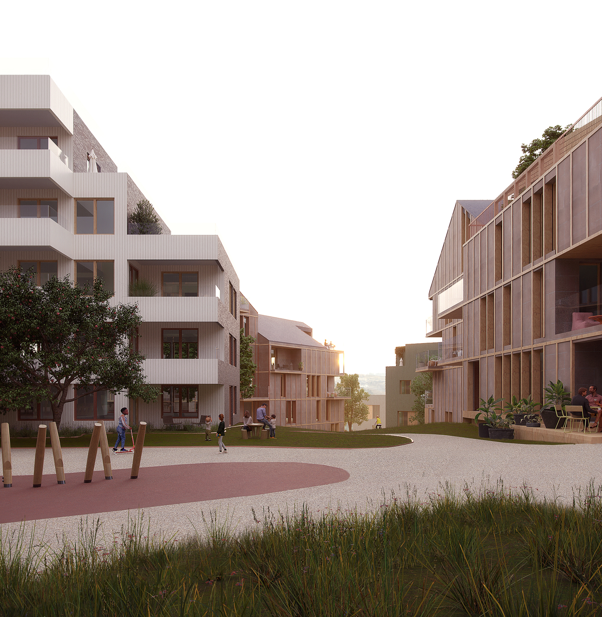 Intensjonen med planforslaget er å rive eksisterende kontorbebyggelse og føre opp inntil 207 boenheter. Planforslaget legger opp til å bygge på allerede utsprengte grå flater. Hovedgrepet i planforslaget er en tredeling av foreslått bebyggelse, med ulik utnyttelsesgrad, høyde og formgiving. Planforslaget legger opp til en plassering av boligblokker langs Sandsliåsen, med mer oppløst småskalabebyggelse mot øst.