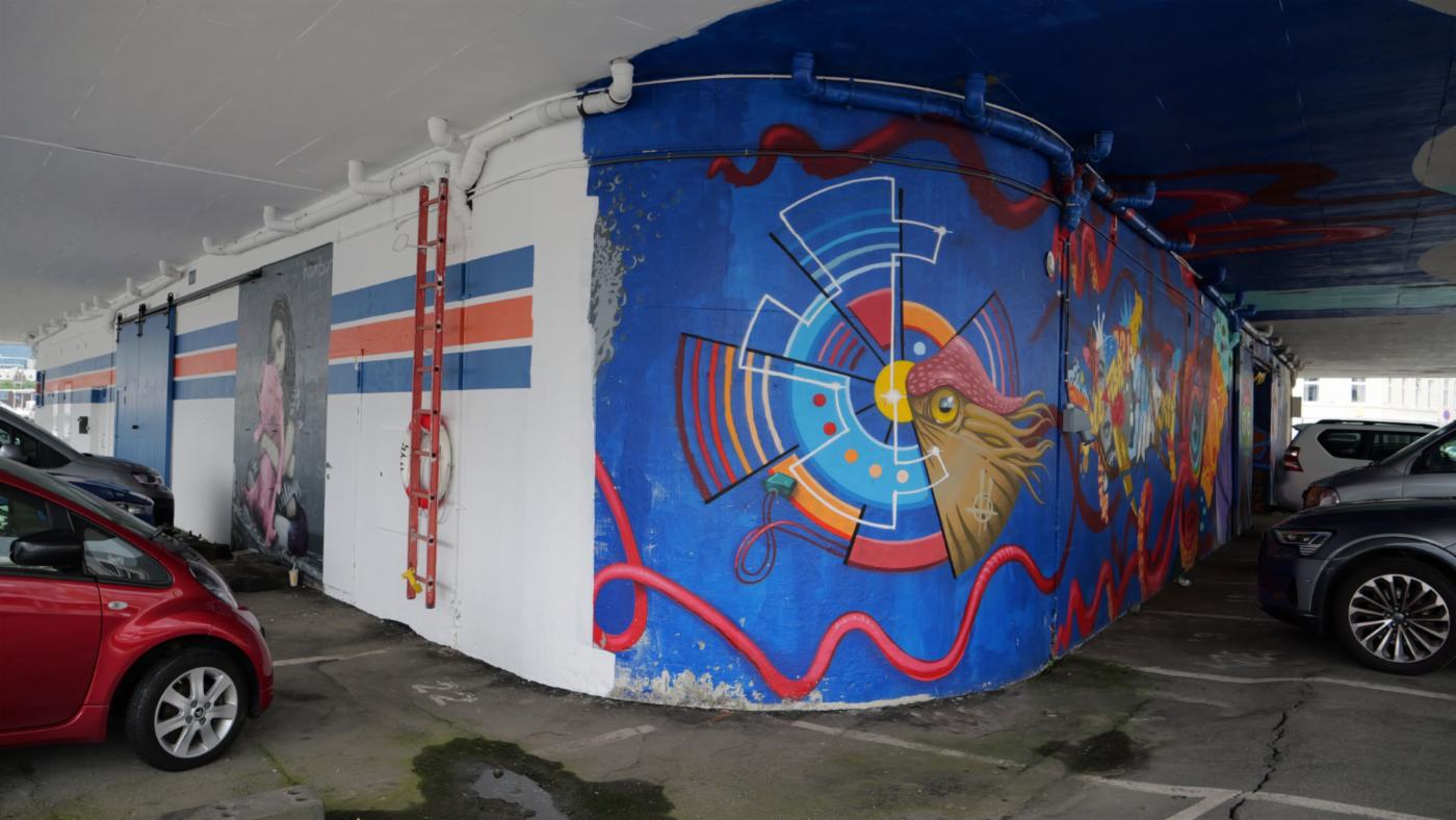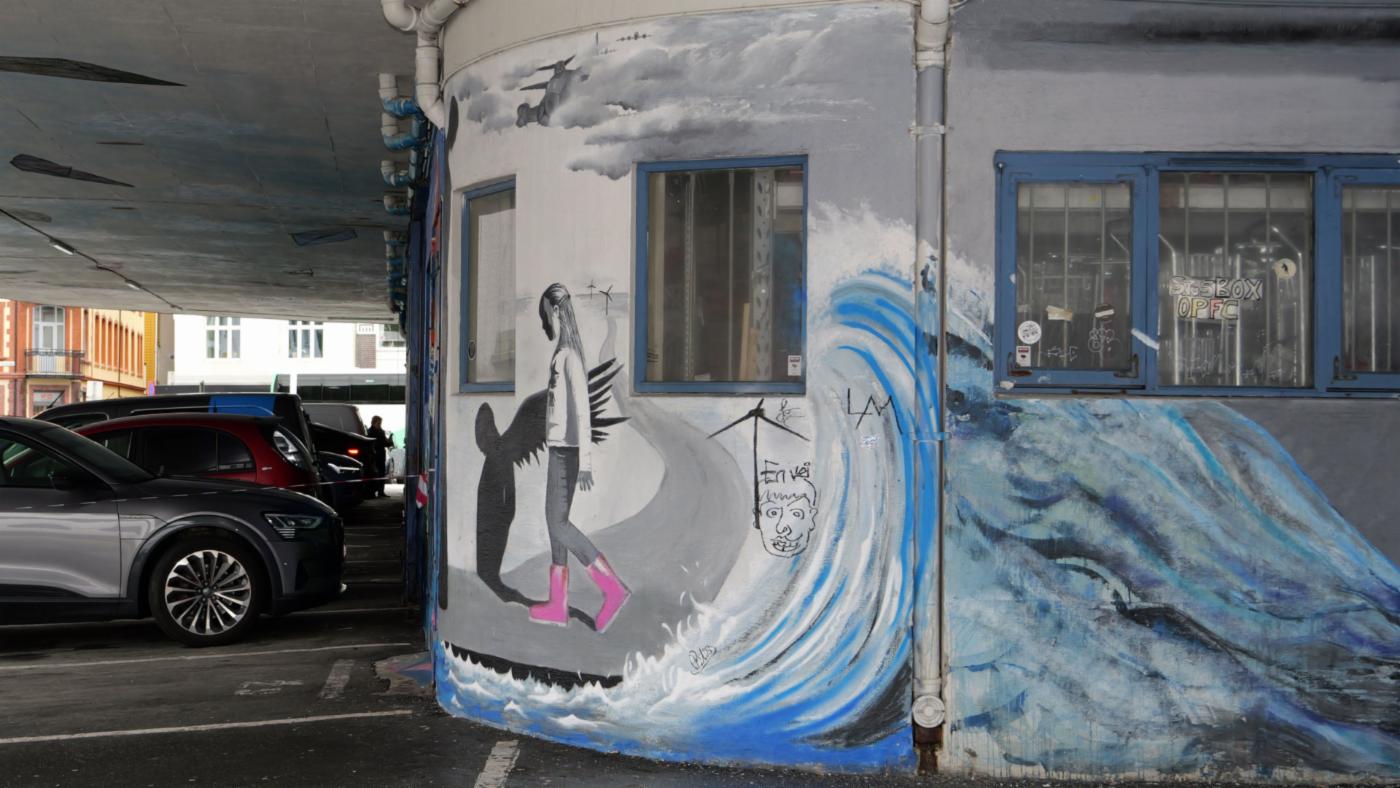 ETT IGJEN: Dette veggmaleriet fikk stå igjen da malerne i Etat for bygg og eiendom malte Skur 14.