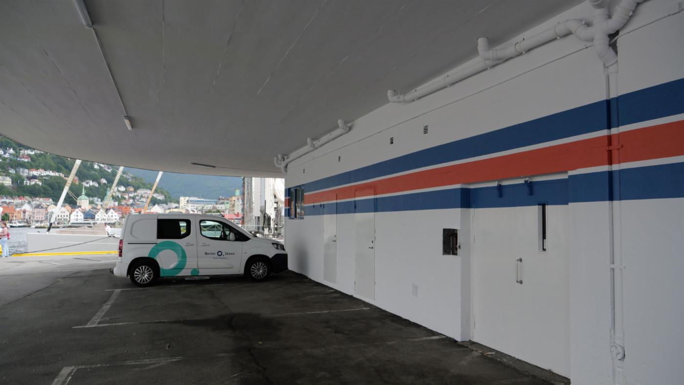 Fasaden og taket over parkeringsplassene rundt Skur 14 hadde behov for vedlikehold og utbedring. I løpet av sommeren har maleravdelingen i Etat for bygg og eiendom malt hele bygget.