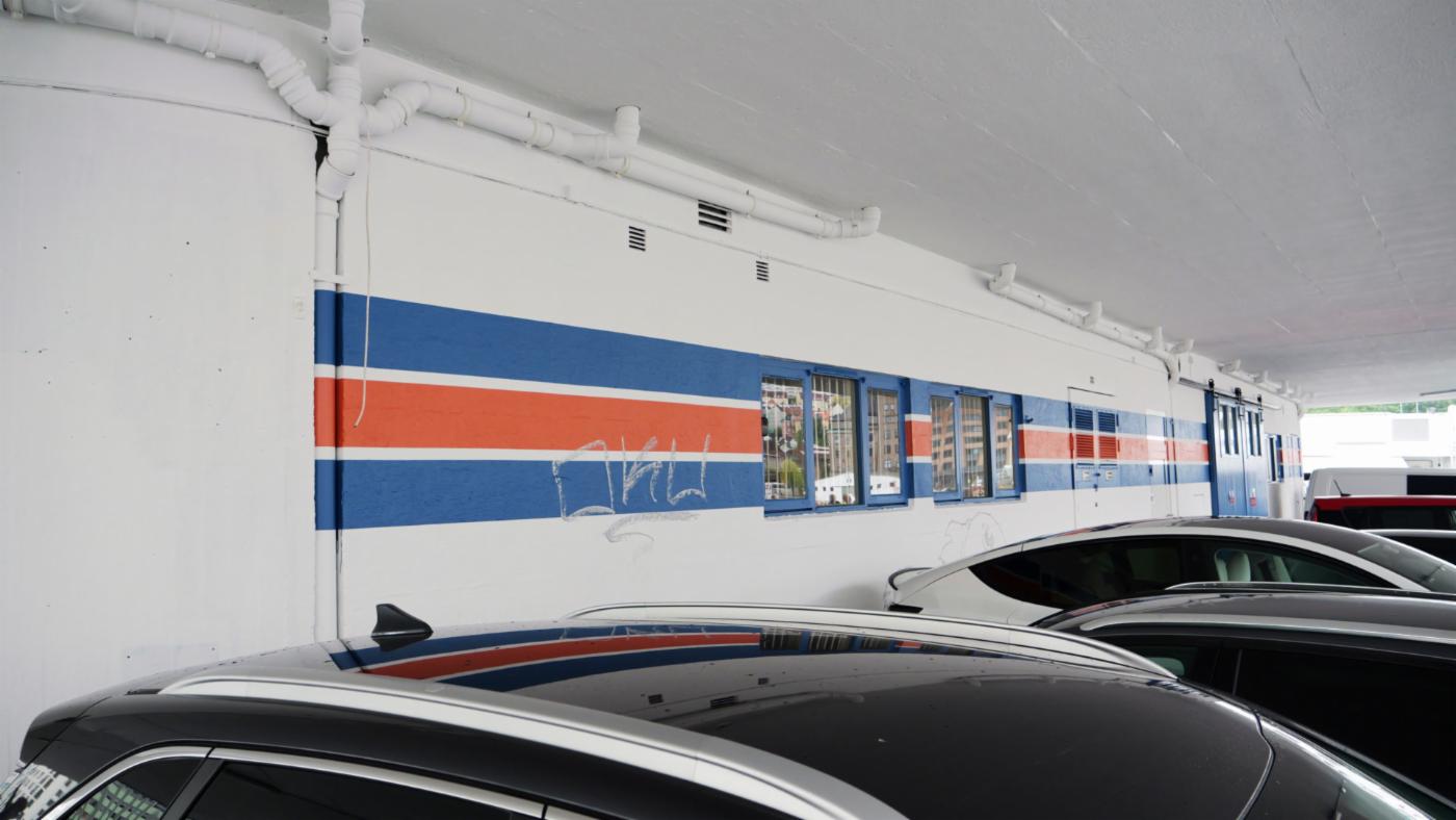 GAMMELT OG NYTT: Hjørnet viser overgangen fra gammel og slitt grafitti, til nymalte vegger med dekorative striper.