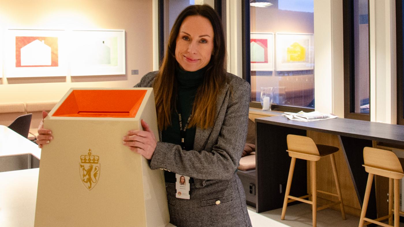 – Dette til forskjell fra stortingsvalget, der alle stemmesedler ligger klare i avlukket. Her velger du stemmeseddel, bretter denne og legger den i urnen uten konvolutt, forklarer hun.