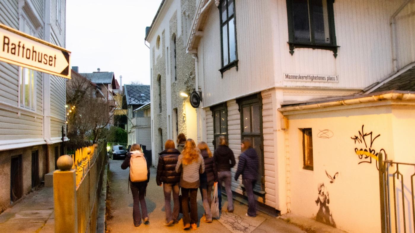 BESØK PÅ RAFTOHUSET: Tirsdag 10. desember, på FNs menneskerettighetsdag, var Dembra-elevene fra Rå på Raftohuset for å lære mer om fordommer.