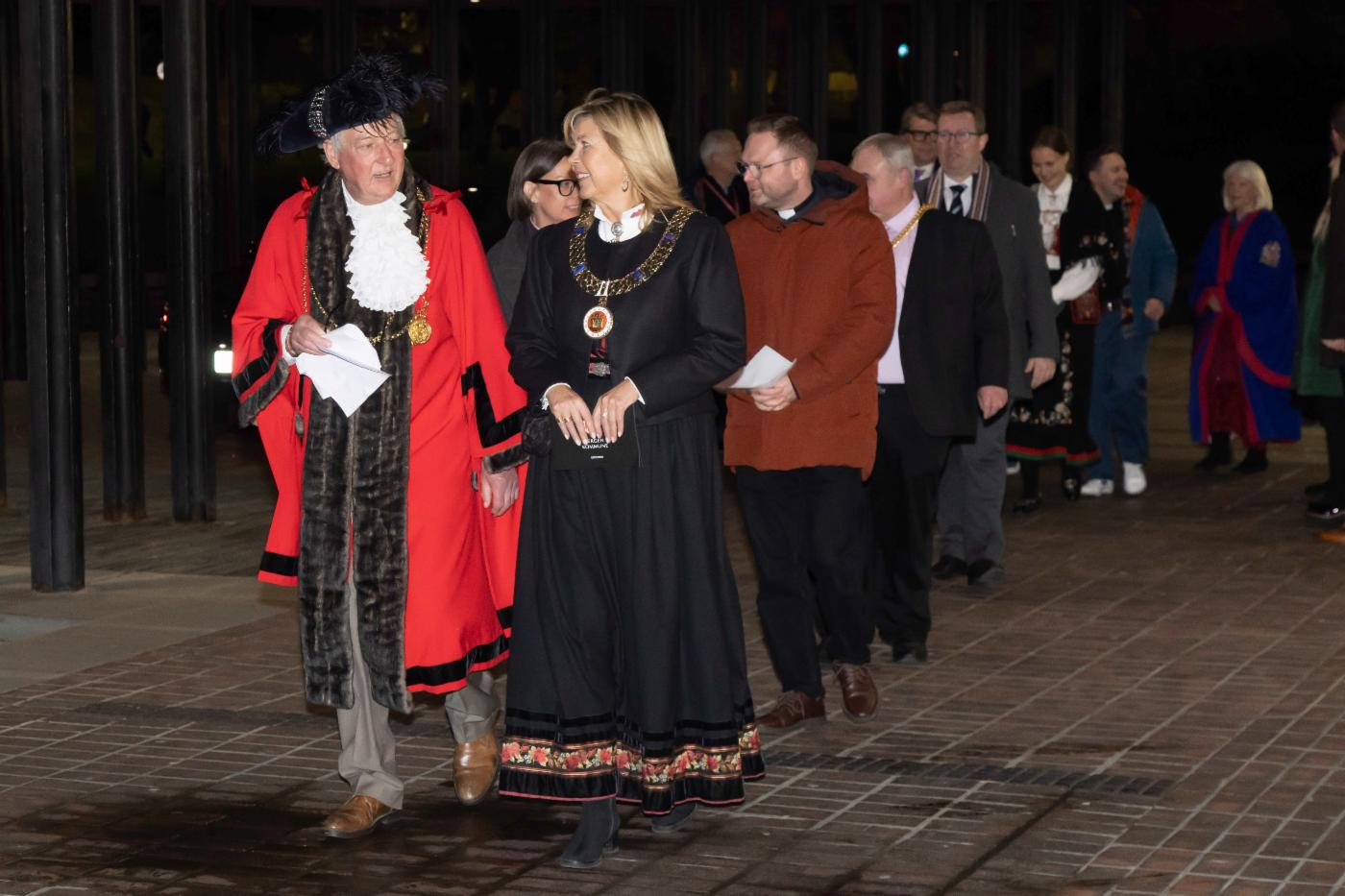 Ordføreren i Bergen og Newcastle i front for en gruppe mennesker
