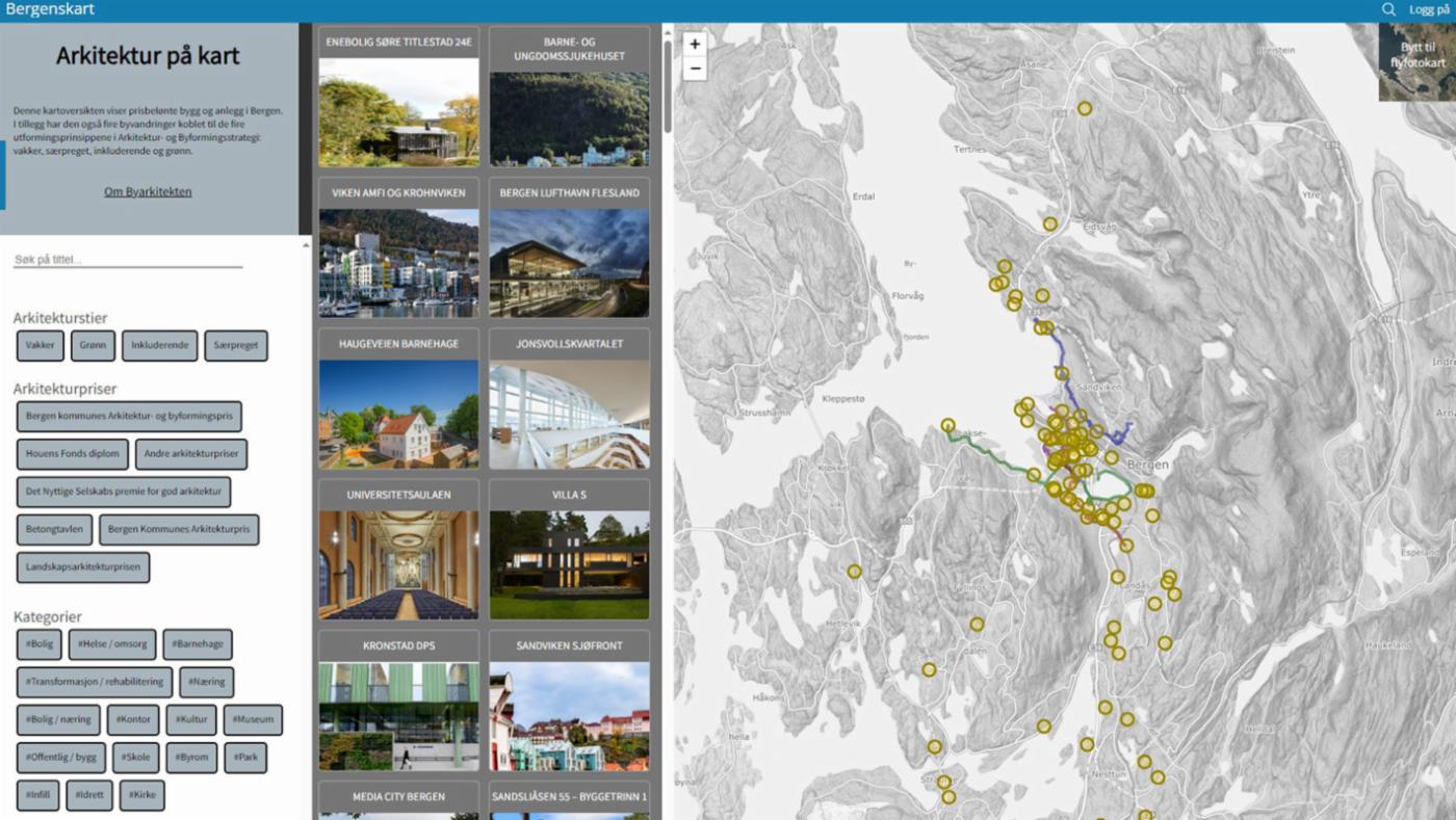 Arkitektur på kart er nå tilgjengelig på Bergenskart.no