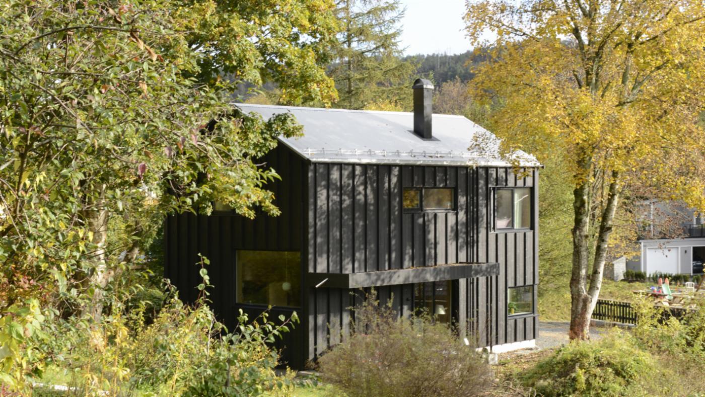 Grunnideen bak eneboligen er overgangen fra felt til enebolig, rommet mellom trærne, og å skape gode romopplevelser som kan bli til fine barndomsminner.