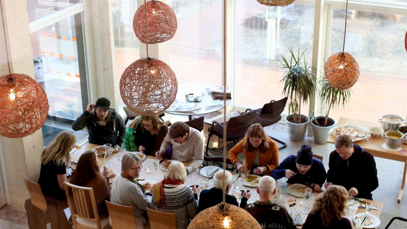 Møteplassen strakk seg ut fra museet mot alleen og Byparken utenfor og hadde fri inngang. Museet samarbeidet med Bergensinstitusjonen - kafe Smakverket, som serverte god mat og drikke både inne og utenfor KODE2.