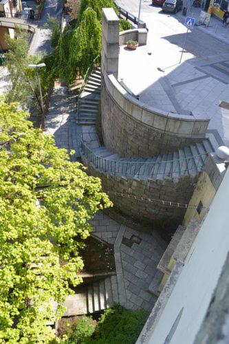 Sentrumsparken i Ytre Arna med sitt flotte trappeanlegg før rehabilitering.