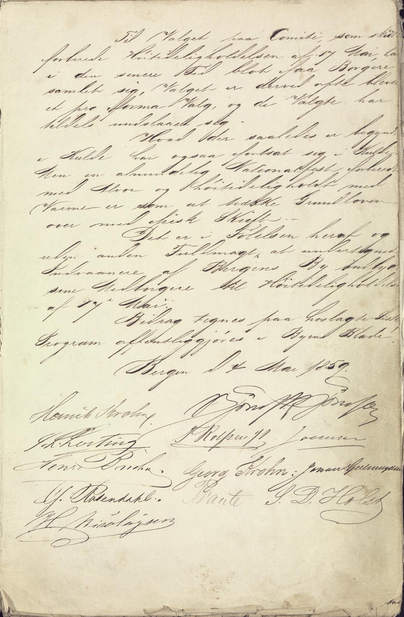 Bjørnstjerne Bjørnson var kunstnerisk leder for Det Norske Teateret i Bergen fra 1857 til 1859. Det siste året satte den da nygifte forfatteren og journalisten opp Hærmendene på Helgeland i teateret, utgav bondefortellingen «Arne» og den første versjonen av «Ja, vi elsker». I arkivet etter 17. maikomiteen 1859, oppbevart ved Bergen Byarkiv, kan vi se at den 27 år gamle Bjørnstjerne Bjørnson også var med i 17. maikomiteen dette året.