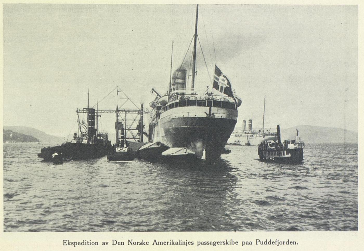 Den norske Amerikalinjes ankomster og avganger er også nøye ført i disse protokollene. Ved utgangen av 1914 kan vi i protokollen se at 13495 passasjerer reiste med Amerikabåtene «Bergensfjord» og «Christianiafjord» til New York dette året. 8734 passasjerer reiste fra Amerika til Norge.