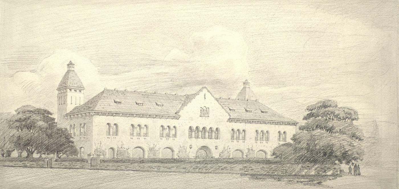 Vi har plukket ut noen av Nordhagens vakre tusjtegninger til biblioteket, signert i april 1914, som du kan bla i. Du kan også ta en titt på Nordhagens konkurranseutkast, trolig fra den andre arkitektkonkurransen i 1906. Det er bare bevart tre tegninger fra konkurransen. Sannsynligvis har han levert flere, som er gått tapt. Skulle du ha lyst å følge byggearbeidet har vi også skannet byggekomiteens møtebøker.