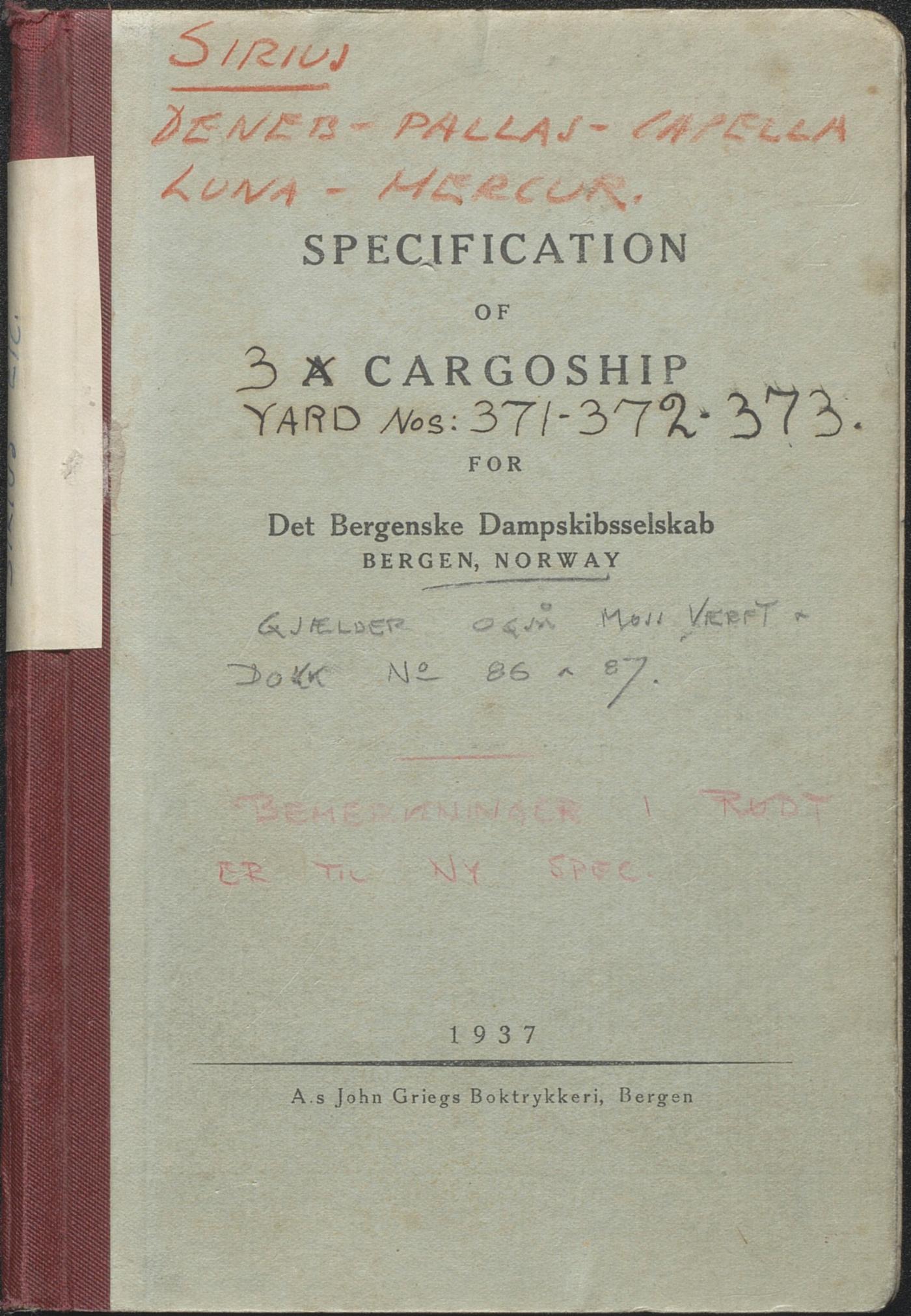 I arkivet kan vi finne kontrakten mellom skipsrederiet Bergenske Dampskibsselskap (BDS) og Bergen Mekaniske Verksted (BMV) for å bygge båten, samt det originale målebrevet for M/S Sirius. Fra disse dokumentene kan vi se at M/S Sirius var en av tre båter som ble bygget samtidig og etter samme spesifikasjon, de to andre båtene hadde byggenummer 372 og 373 og er navngitt M/S Pallas og M/S Deneb. Det ble etter hvert bygget flere skip med samme spesifikasjoner som M/S Sirius. I salgspapirene til M/S Sirius ser vi at BDS kaller denne type skip for «Sirius» klassen.
