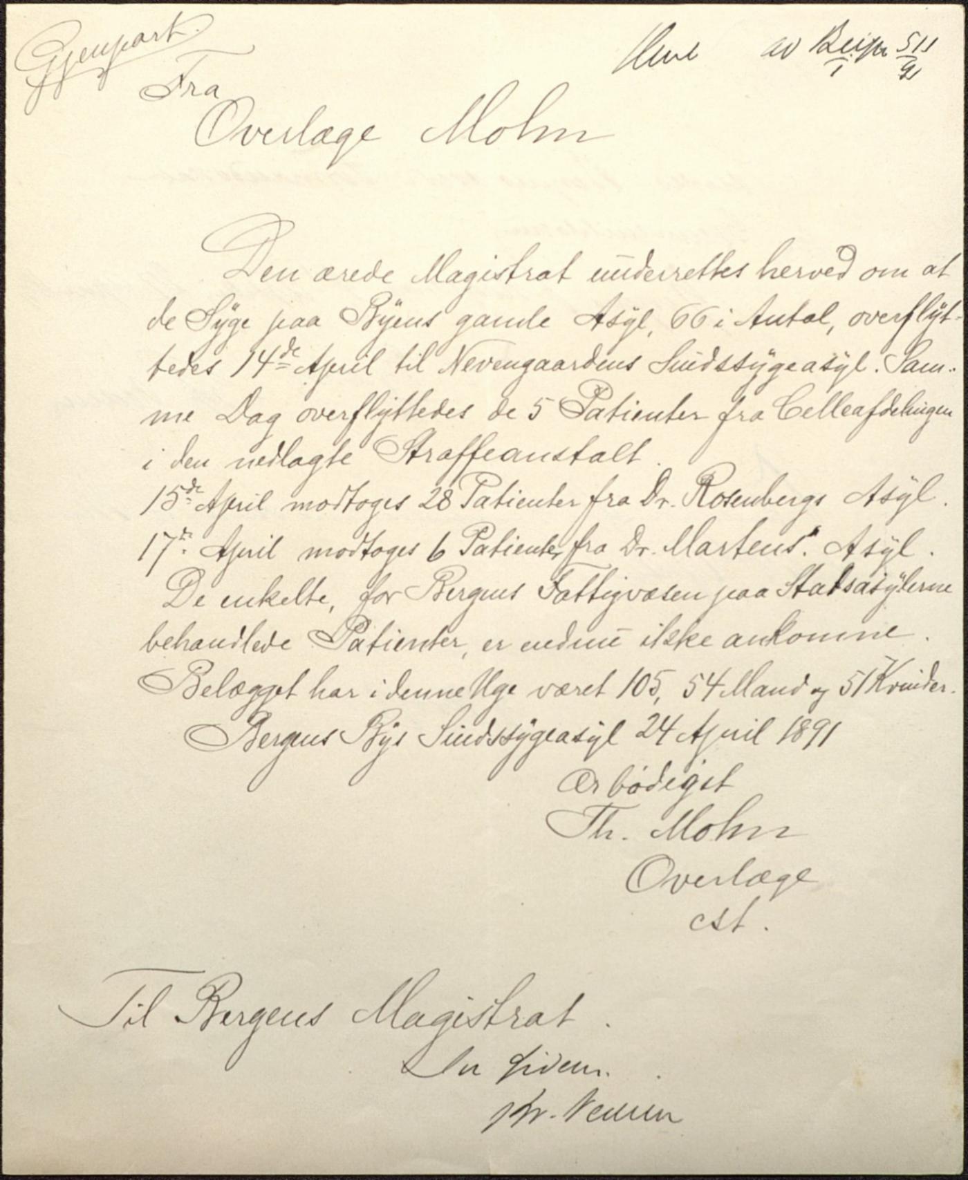 Komiteen som skulle fremlegge skisser og overslag for et nytt sinnssykeasyl skrev slik i sin innstilling til Formannskapet i 1884: «Der vil altid være knapt om Penge til saadanne uproduktive Formaal som Asyler, men en Gang imellem faar Humanitetens Krav gå foran alle andre».