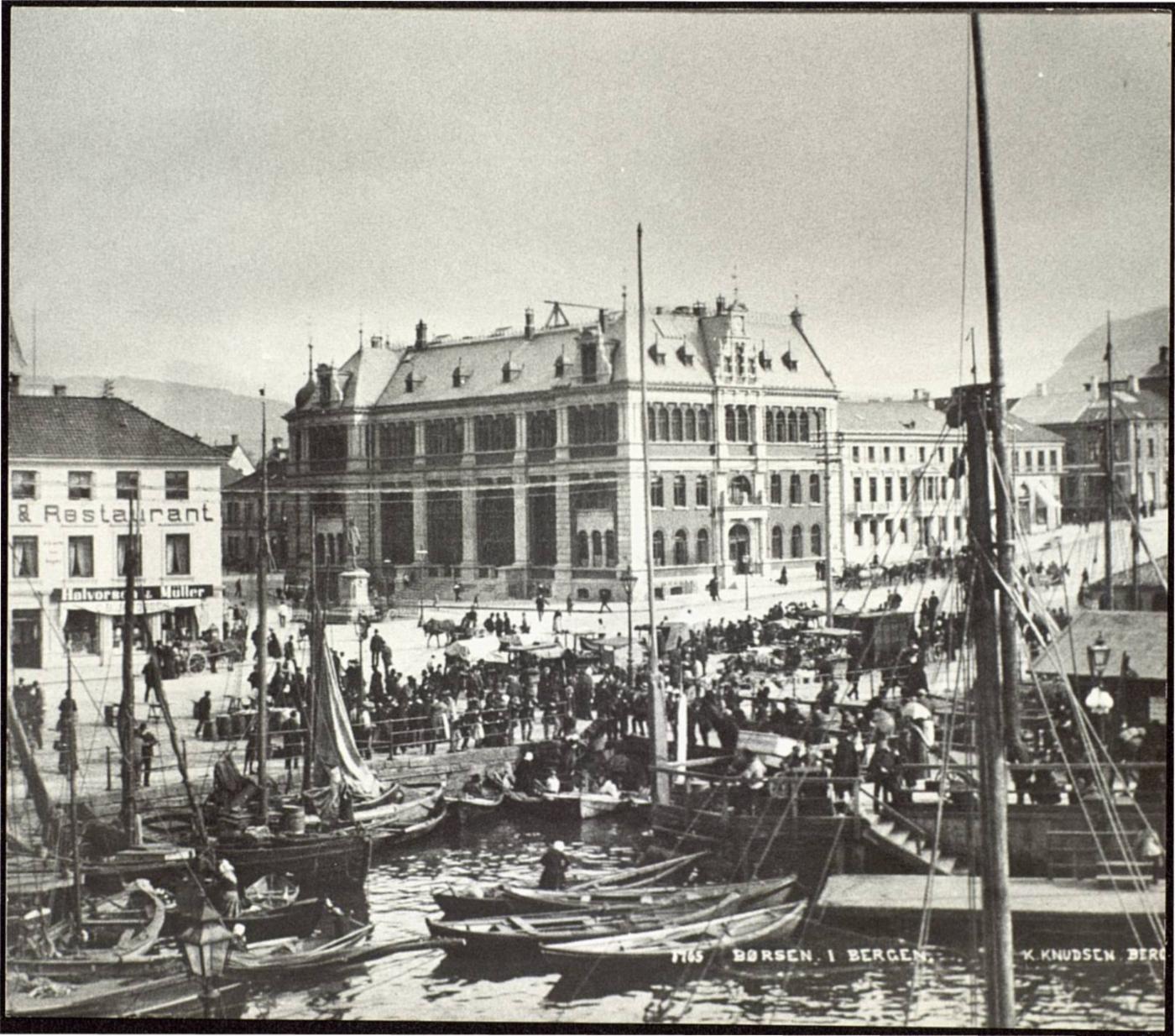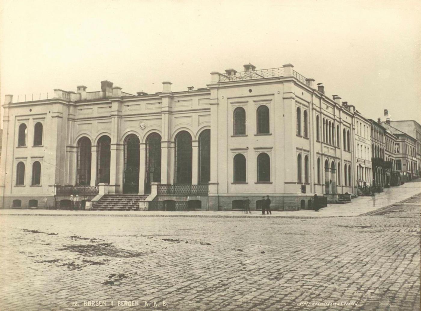 Utgraving av tomten til børsbygningen med adresse Vågsallmenning 1 startet i 1857. I 1862 sto bygningen, som var tegnet av arkitekt Frantz W. Schiertz, ferdig. I forkant hadde det vært planlegging med diskusjoner og skriverier i avisene i mange år. Spesielt var bygningens plassering et stort diskusjonstema. En av betingelsene for å oppføre en børsbygning i Bergen, var at den fikk en sentral plassering – «på Torvet».