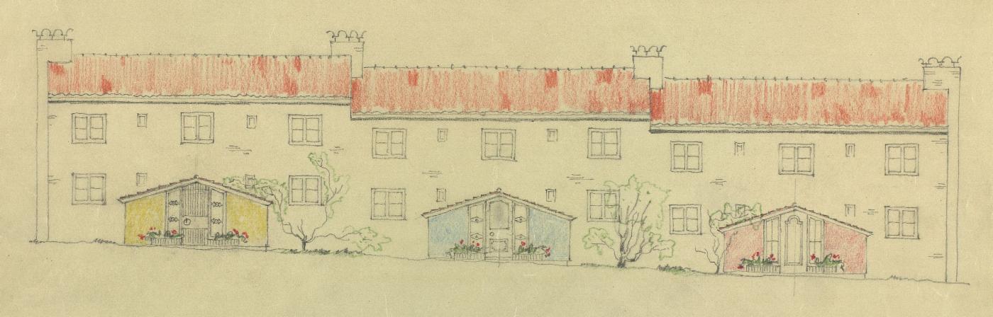 I 1950 ble det foreslått at Boligrådet i Bergen skulle reservere et kommunalt tomteareal på Slettebakken til bygging av eldreboliger. Boligområdet sto ferdig i 1956-57 og var det første i sitt slag i Bergen. Anlegget består av 24 hus rundt et felles tun. Hvert hus har fire leiligheter. De toetasjes murhusene har en enkel og klar utforming med fine arkitektoniske detaljer. Leilighetene skulle passe både for ektepar og enslige, og inneholder entré, bad, wc, spisekjøkken og stue med sovealkove. I tilknytning til anlegget ble oppført en "hobbybygning" med blant annet separate klubbrom for damer og herrer.