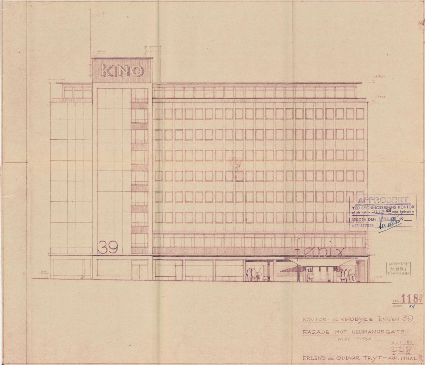 Allerede tidlig på 1900-tallet kom de første kinoene i Bergen. I 1919 fikk kommunen monopol på kinodriften, og året etter startet Bergen kommunale kinematografer filmfremvisning, blant annet i Logen, Konsertpaleet og Det gamle teateret. Under krigen ble den gamle teaterbygningen ødelagt i bombeangrep og kommunen kjøpte tomten i 1956. Formålet var å bygge et kombinert kino- og kontorbygg på 9 etasjer. Bygget ble tatt i bruk i 1961. I tillegg til Engen kino med 904 sitteplasser, huset bygget flere kommunale etater: helserådet, pensjonskassen, kemneren, ligningsvesenet og folkeregisteret. I øverste etasje var det innredet en moderne vaktmesterleilighet. I 1989 ble Engen kino bygget om for å inngå i et større kinosenter sammen med Konsertpaleet.