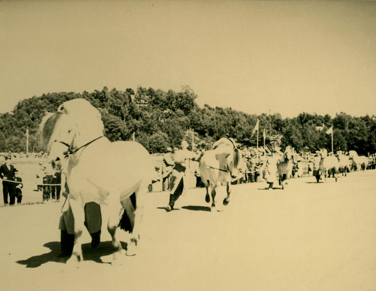 Månedens foto er hentet fra arkivet etter Landbrukskontoret, Bergen kommune. Fotoene er fra jubileumssjået for hest og storfe på Nesttun 9-11. juni 1958. Jubileet markerte at det var 100 år siden første dyreskue i Hordaland ble avholdt på Voss. Skuet skulle være et minne om dette, og en markering av utviklingen i jordbruket etter 1858. Hester, kyr, griser og høns fra flere vestlandsfylker møtte. Skue for småfe ble holdt på Voss 7. oktober 1958.