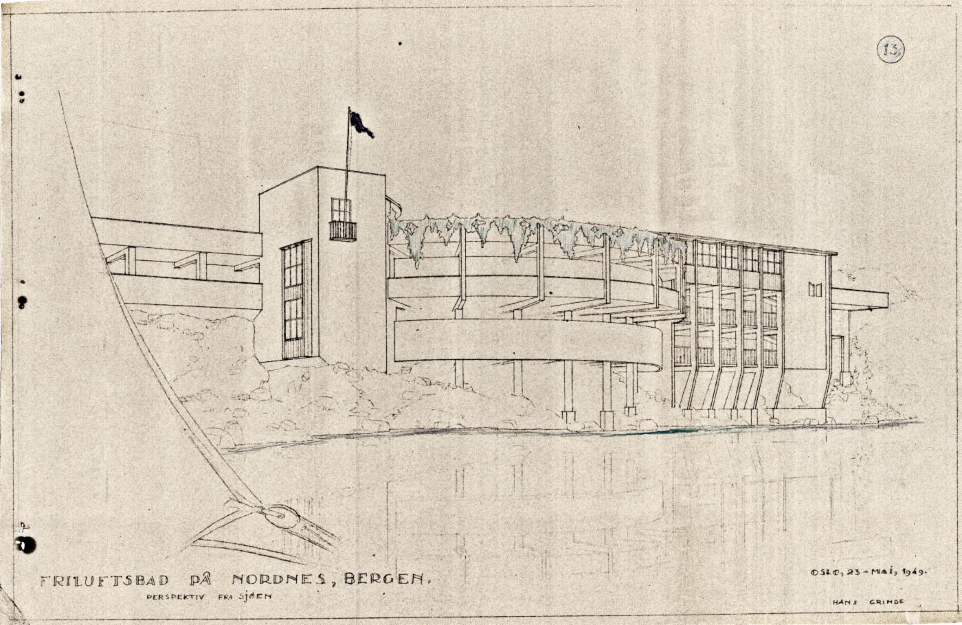 I 1935 startet planleggingen av et nytt badeanlegg på Nordnes. Sjøbadet fra 1910 var blitt slitt og utidsmessig. Utvalget for de kommunale bad arbeidet på 1950-tallet for et kombinert anlegg; renselsesbad, friluftsbad og konkurransestadion. Anlegget skulle inneholde et 50 metersbasseng med stupetårn og skyvebro, slik at bassenget kunne deles i to. I tillegg skulle det være et mindre barnebasseng med lekeplass i nærheten. Videre ble det planlagt garderober, sanitæranlegg, badstue, serveringsbod, tilskuerplasser samt flere spesialrom. I 1953 vedtok bystyret å bevilge penger til anlegget. På samme tid ble også Sentralbadet planlagt. I 1954 ble anlegget utsatt på ubestemt tid til fordel for Sentralbadet. Dagens sjøbad, bygget i 1964, er sterkt redusert i forhold til de opprinnelige planene.