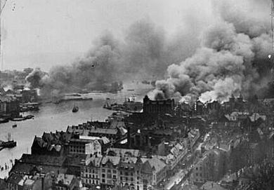 Eksplosjonen sett fra Skansen mot Festningskaien. Foto: ukjent. BBA-1181, Va:5.