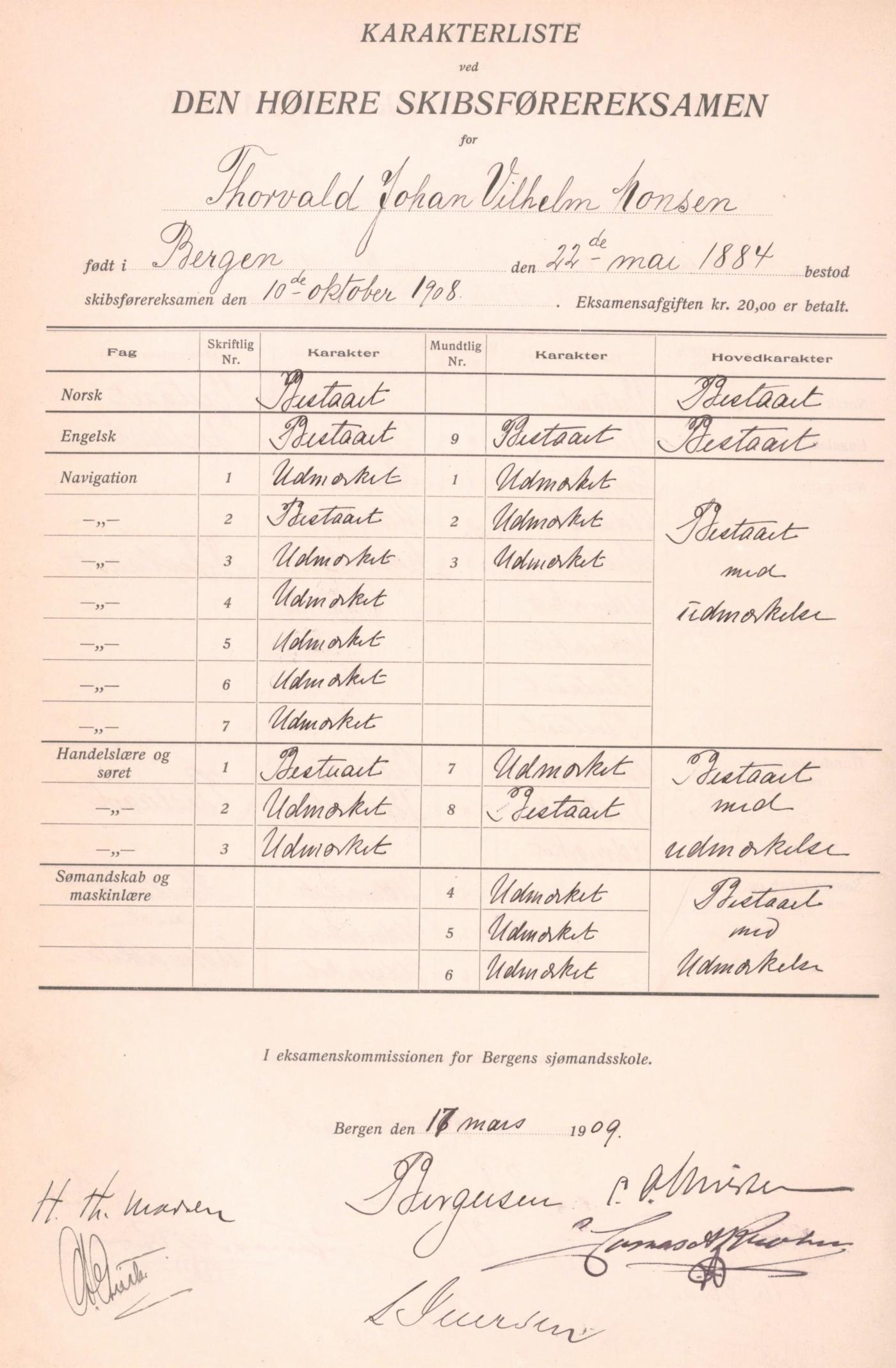 Utover på 1900-tallet finnes det eksamensprotokoller i fire ulike klasser: den høyere skipsførereksamen, skipsførereksamen, styrmannseksamen og eksamen i farvannskjennskap (for loser).