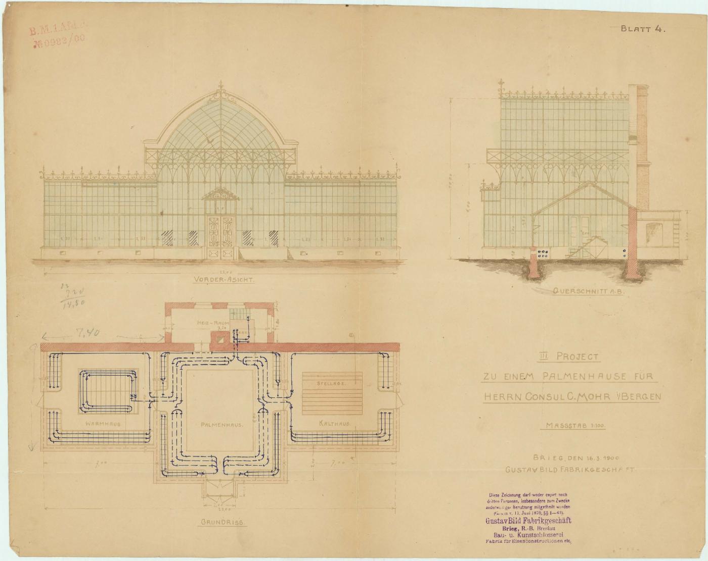 1862, sak nr. 15* – museets søknad om kommunens garanti for den nye bygnings fullførelse. Det gamle veksthuset, gave til museet fra Konsul Mohr.
