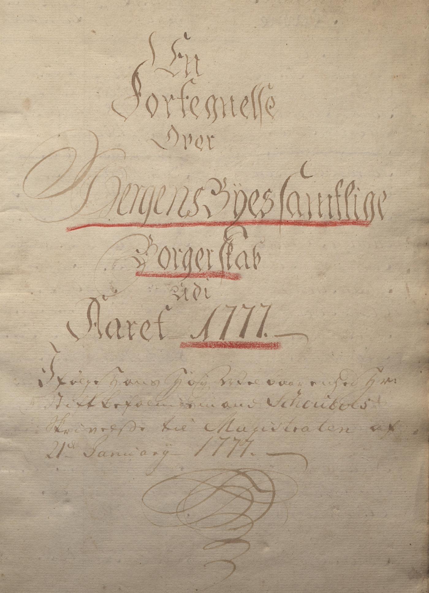 - A-0651 Bergen Magistrat Hb 9/1 Fortegnelse over borgerskap 1777