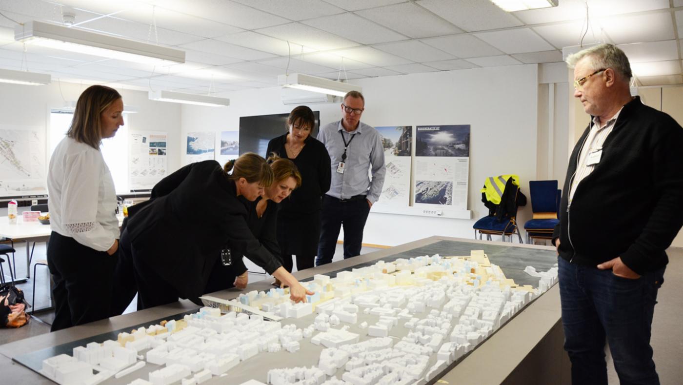 Vel inne i lokalet som prosjektkontoret benytter på Dokken, gikk programleder Laura Ve grundig gjennom bakgrunnsmateriale og planhistorikken til Dokken og fortalte om hva som er gjort så langt for å engasjere Bergens innbyggere i utviklingen av den nye bydelen.