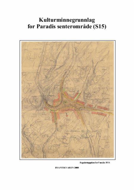 Den foreliggende rapporten tar for seg knutepunktet Paradis (S15). Rapporten peker på kvalitetene i ulike delområder, og gir retningslinjer for hvordan man med hensyn til kulturminnemiljøet kan se for seg en fortetting i eksisterende bebyggelse og utvikling av området til et mer urbant lokalsentrum.